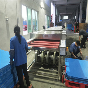 将人造大理石workpiece放在清洁机上之后,将铸件通过传动带运输到擦洗室中,用喷水的刷子清洗,然后进入清洁室,用纯净水冲洗,通过五个不同的过程展开清洁,然后用吸水棉脱水,风干以达到干燥清洁的清洁功效